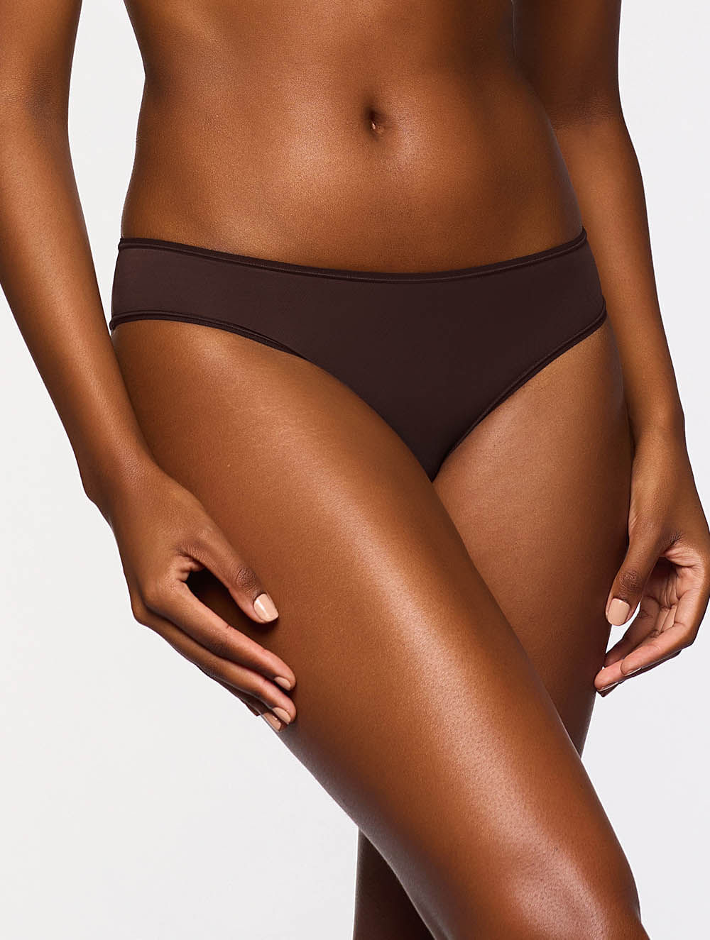 Calcinha com laterais mais largas e maior cobertura de bumbum confeccionada em microfibra de toque macio e aparência opaca com elásticos flats para maior conforto.