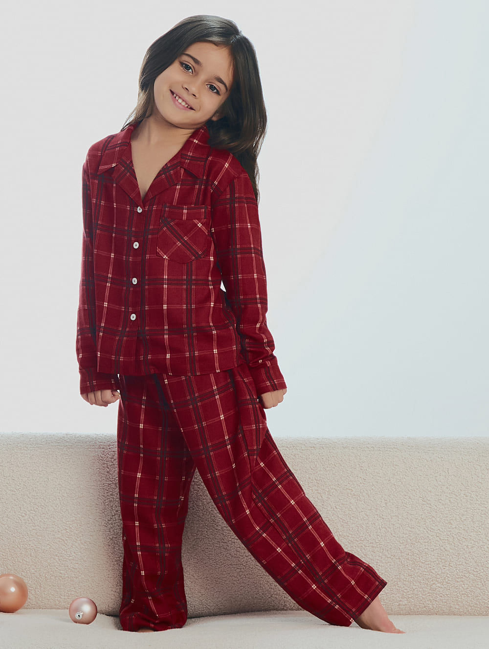 Camisa Infantil Estampada. O modelo possui padronagem xadrez, manga longa e botões frontais para fechamento.