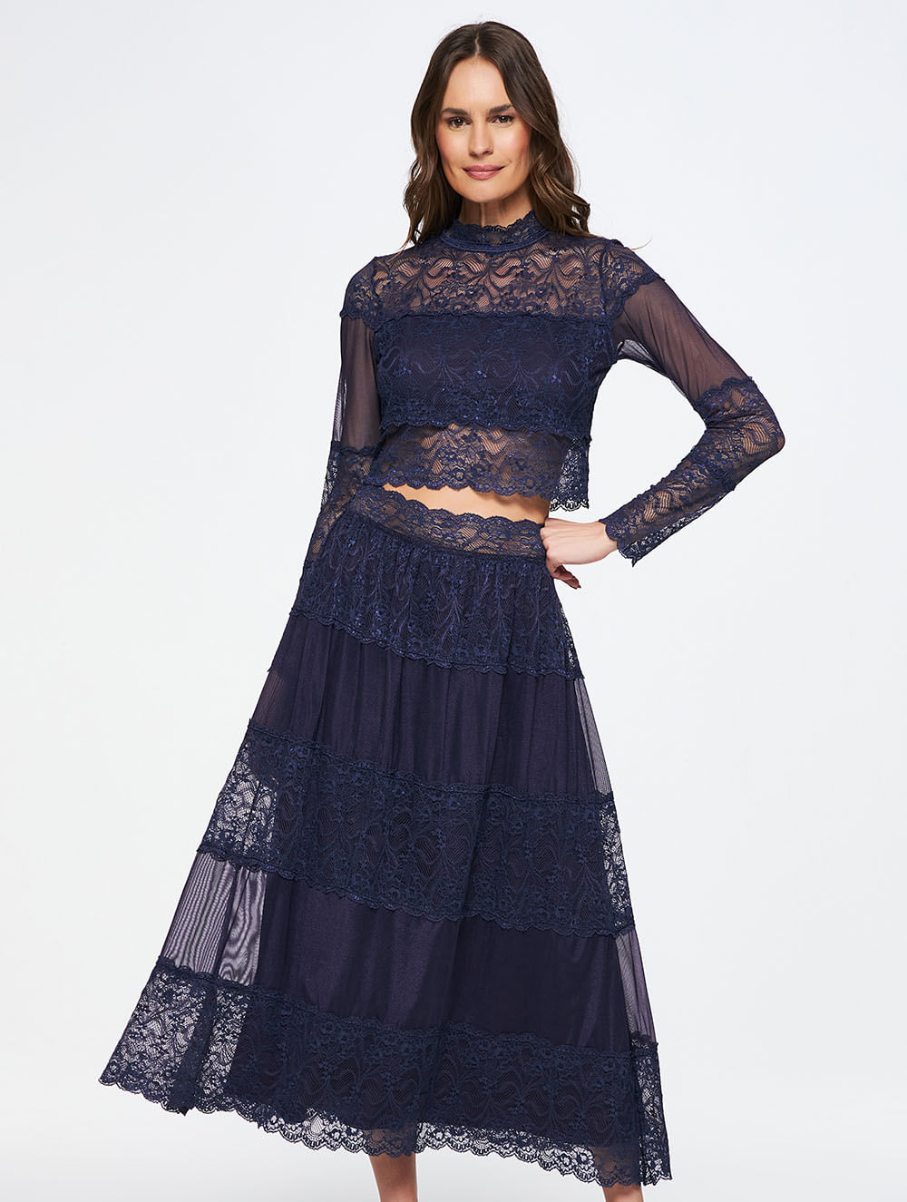 Tecidos: Renda Jolie 83.89% Poliamida 16.11% Elastano / Tule Super Leve 83% Poliamida, 17% Elastano /