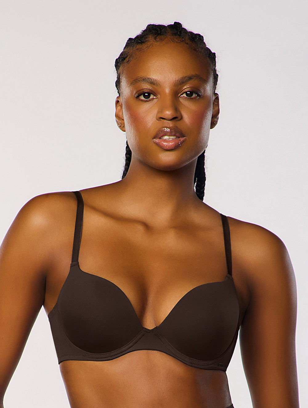 Modelagem com bojos desenvolvidos na profundidade ideal para vestir perfeitamente cada tamanho. Base reforçada, aros e barbatanas laterais para maior sustentação e conforto. Fecho e alças reguláveis com fecho clique nas costas