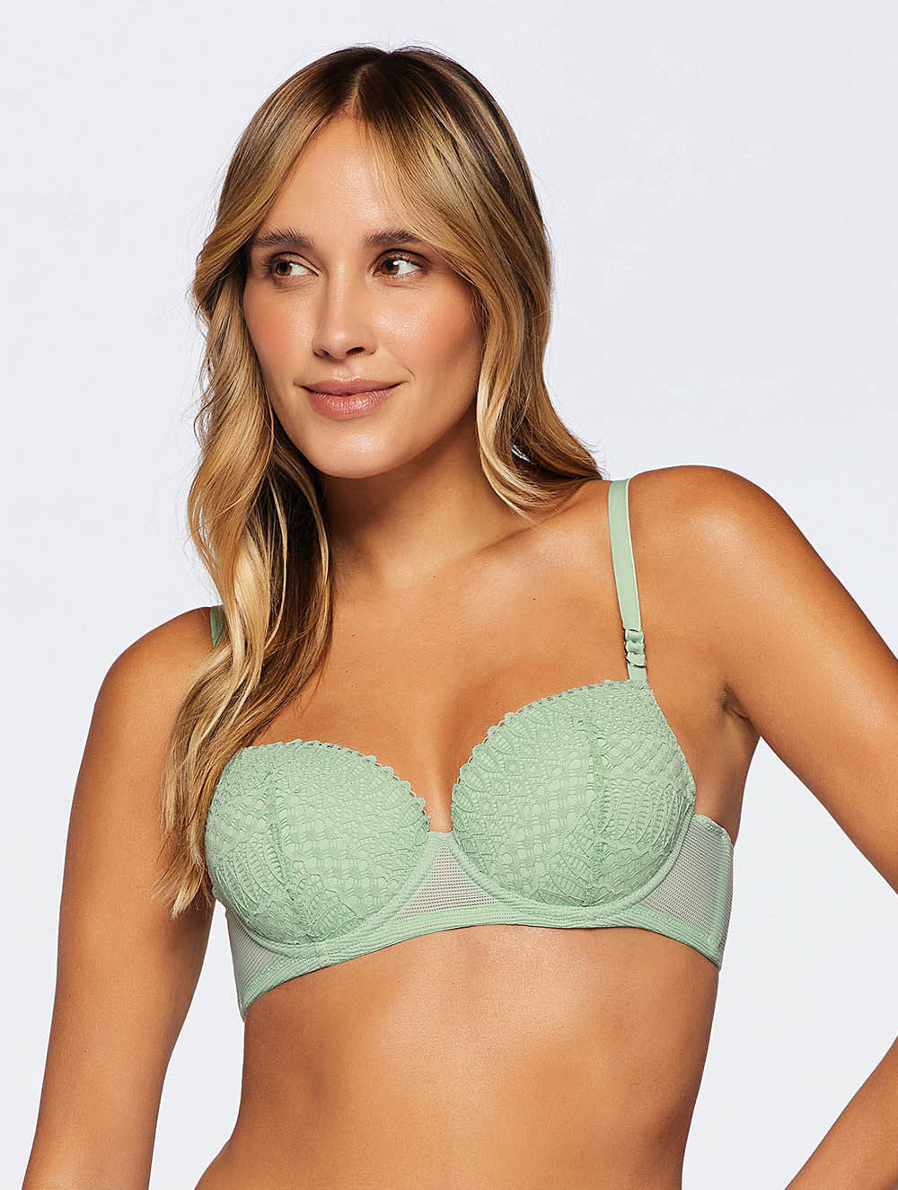 Sutiã com bojo macio que se adapta melhor ao formato do seio. O modelo possui aro, alças com regulagem, laterais largas e fecho nas costas. Coleção: Dreams Referência: 30785 Disponível nos tamanhos: 42, 44, 46 e 48 Tecido: Renda 79% Poliamida 21% Elastano / Laise 92% Poliamida 8% Elastano / Microfibra 88% Poliamida 12% Elastano.
