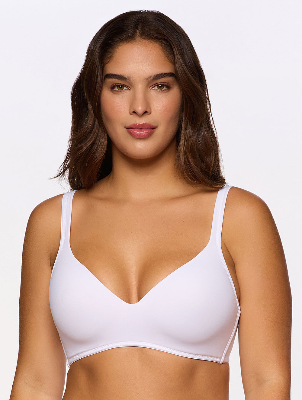 Sutiã com bojo de formato natural que valoriza o decote. Base reforçada com manta, confere sustentação, dispensando o aro. Laterais em microfibra dupla e meia alça mais larga e reforçada garantem conforto aos ombros. Fecho e alças com regulagem nas costas. Possui o sistema de
