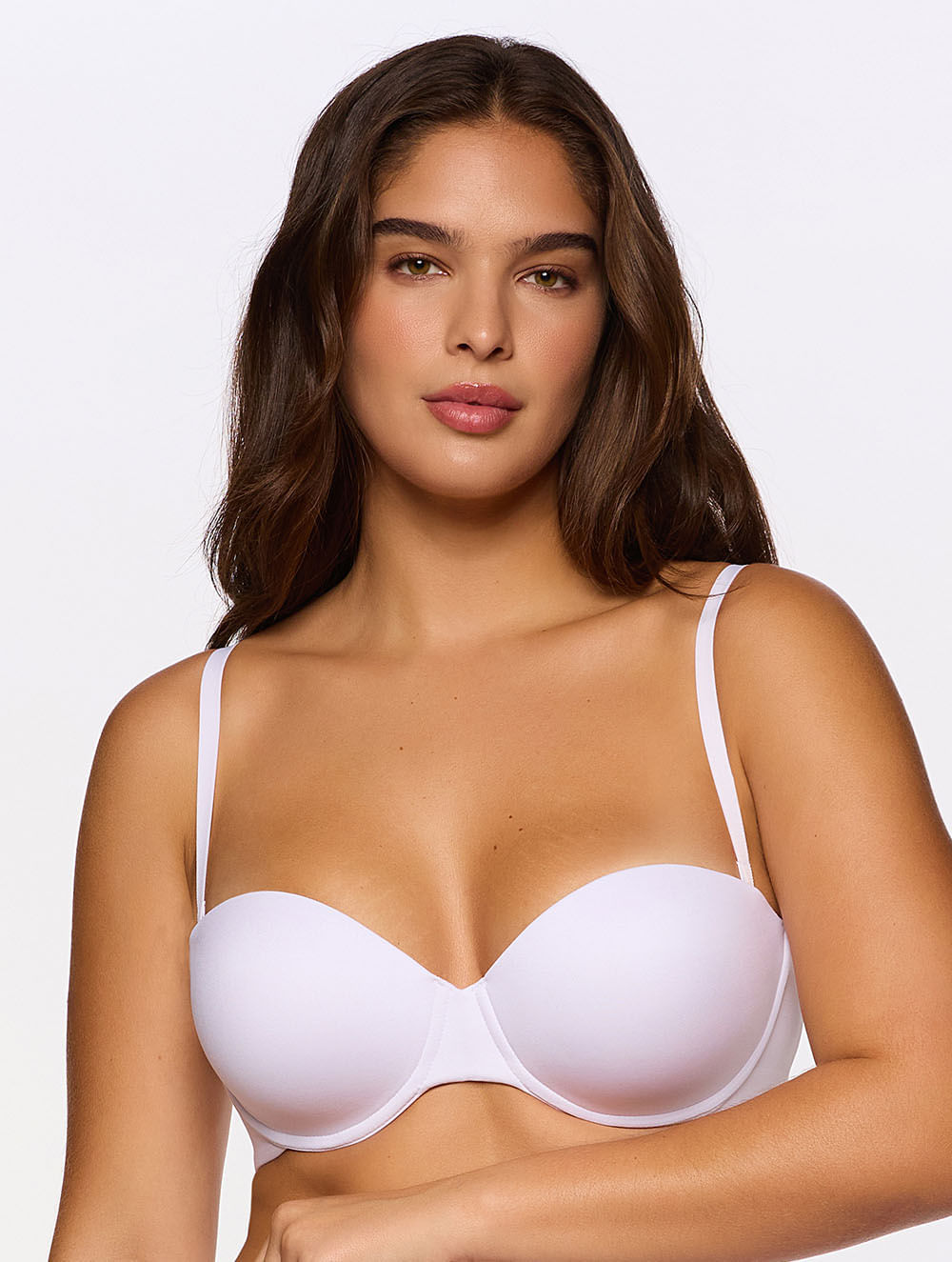 Sutiã tomara que caia com sistema de taças que permite encontrar o tamanho ideal de tórax e busto. Alças removíveis que permitem o uso da peça com alças ou sem. Laterais largas e estruturadas para maior sustentação